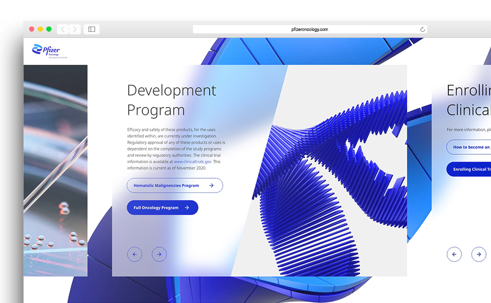 - One of the challenges was translating Pfizer’s new branding—designed primarily for print and static media—into a functional digital experience.